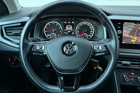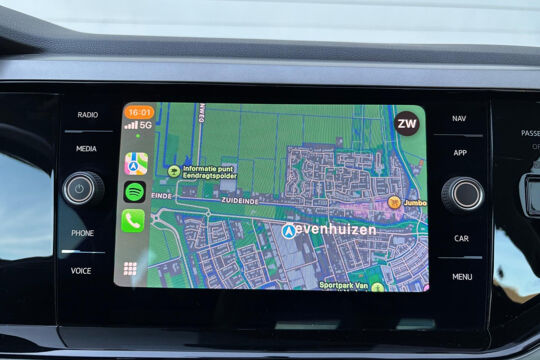 Zeer nette Volkswagen Polo met 5 deuren en zuinige 1.0 liter benzinemotor met 95 pk. Deze auto is voorzien van o.a. airconditioning, adaptieve cruise control, automatische verlichting, touchscreen navigatiesysteem met aanvullend ook ondersteuning van Apple Carplay en Android Auto, DAB+ radio, IsoFix, LED dagrijverlichting, lichtmetalen velgen 15 inch, metallic lak, mistlampen adaptief, parkeersensoren voor en achter, start/stop systeem.