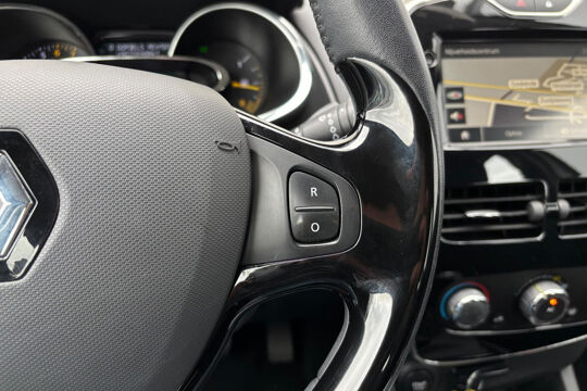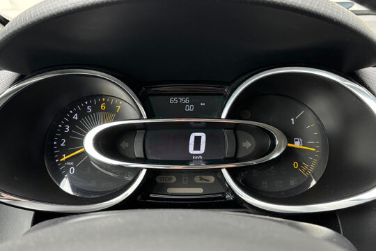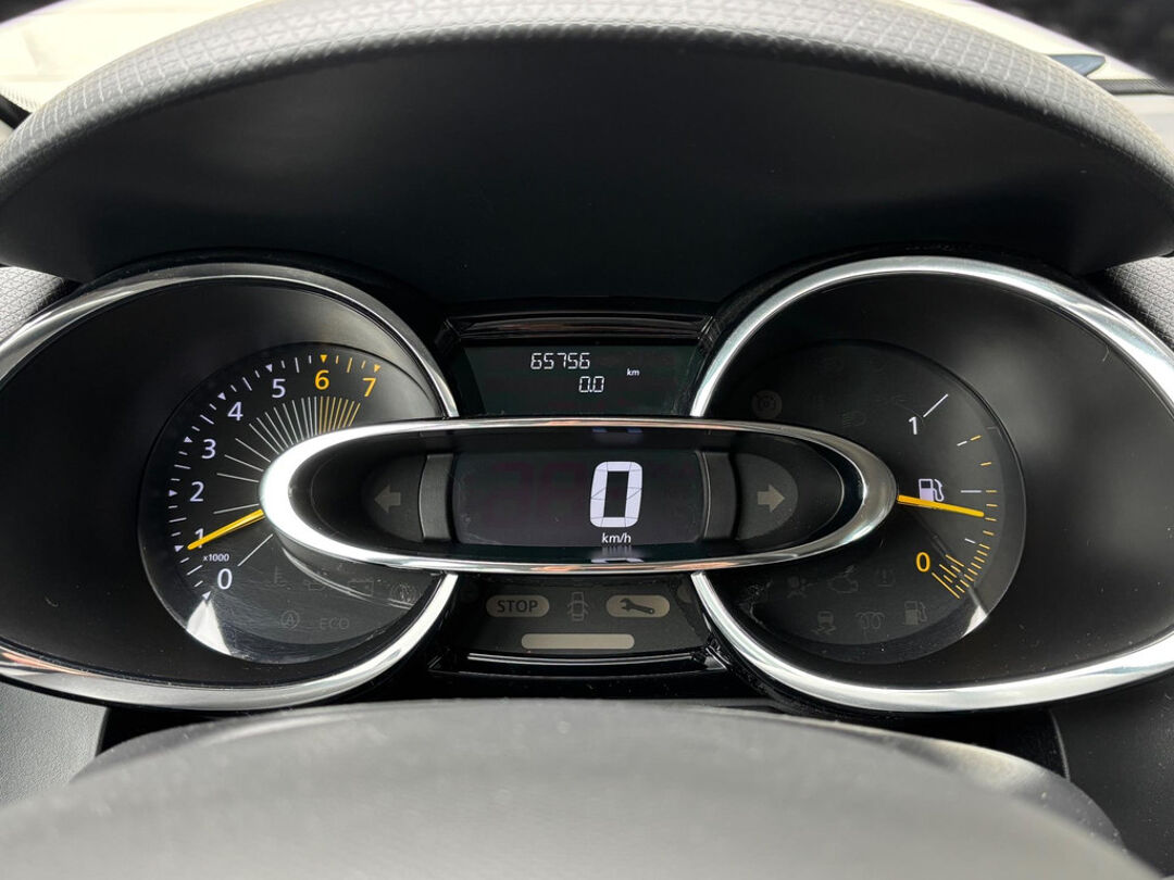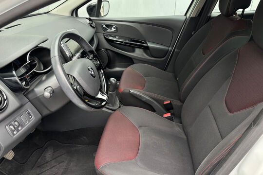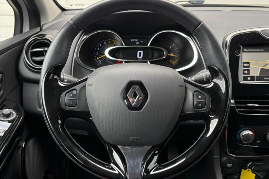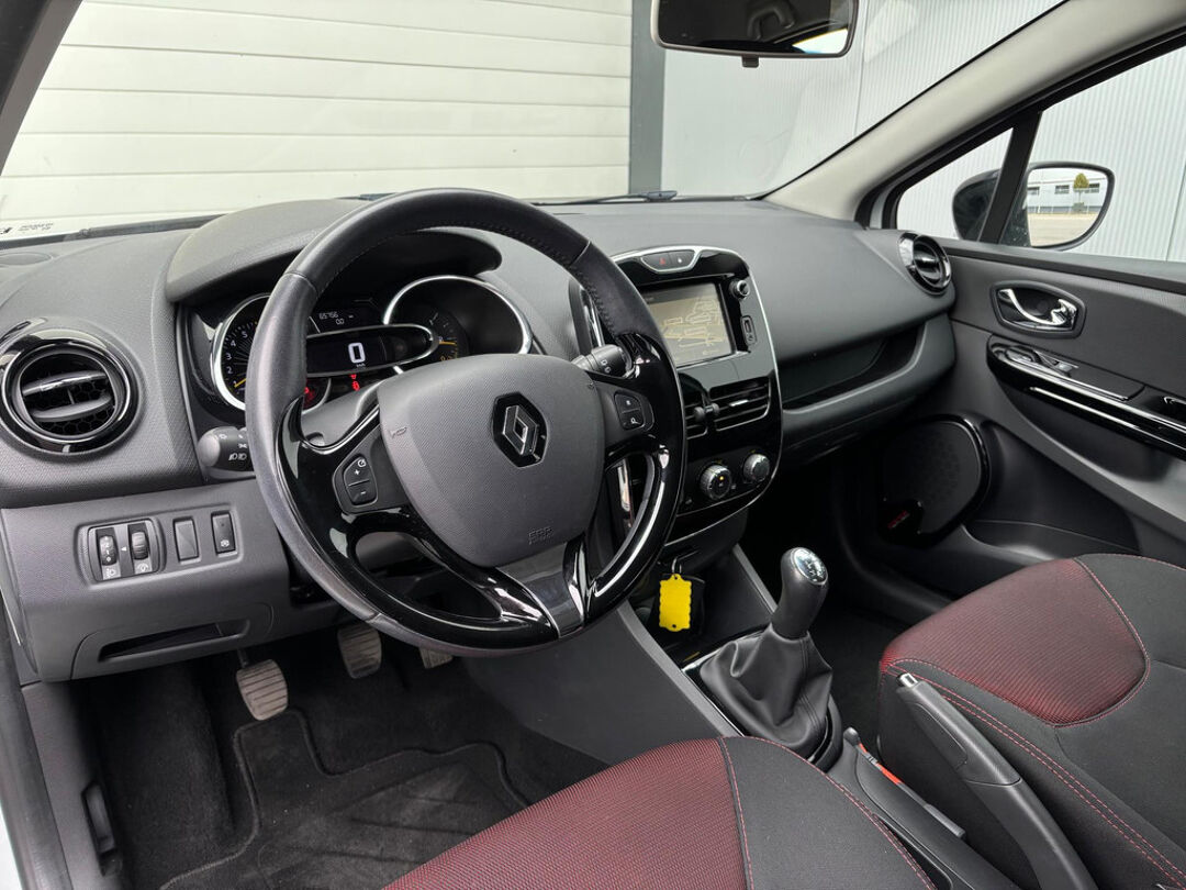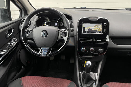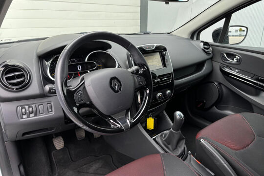 Leuke Renault Clio met zuinige 0.9 benzinemotor met 90 pk, gekoppeld met een handgeschakelde versnellingsbak met vijf verzetten. Deze Clio is voorzien van o.a. airconditioning, cruise control, touchscreen navigatiesysteem, Bluetooth-carkit, 16 inch two-tone lichtmetalen velgen, en mistlampen.