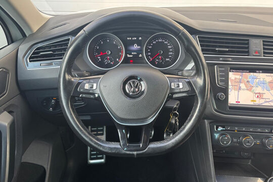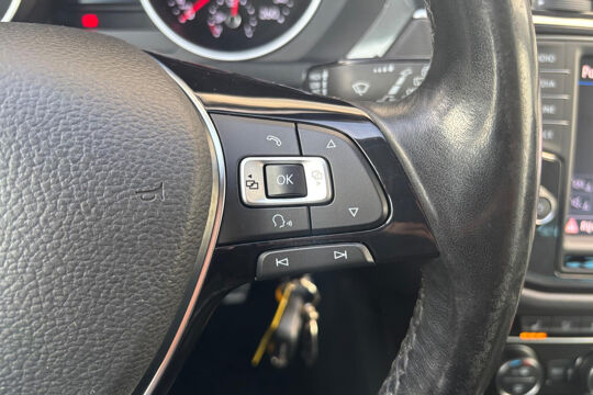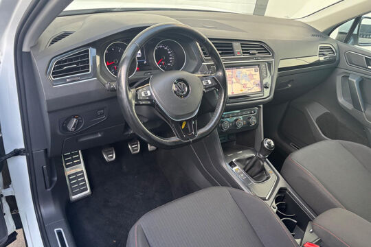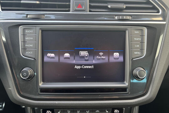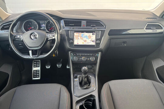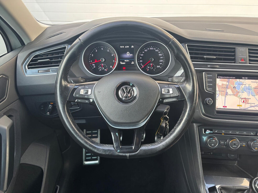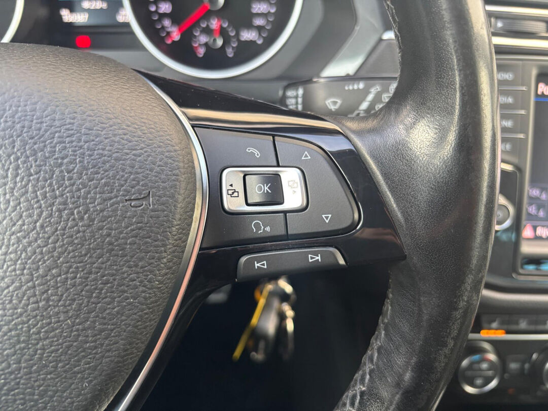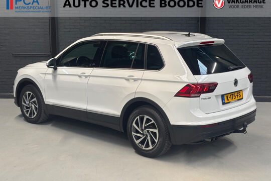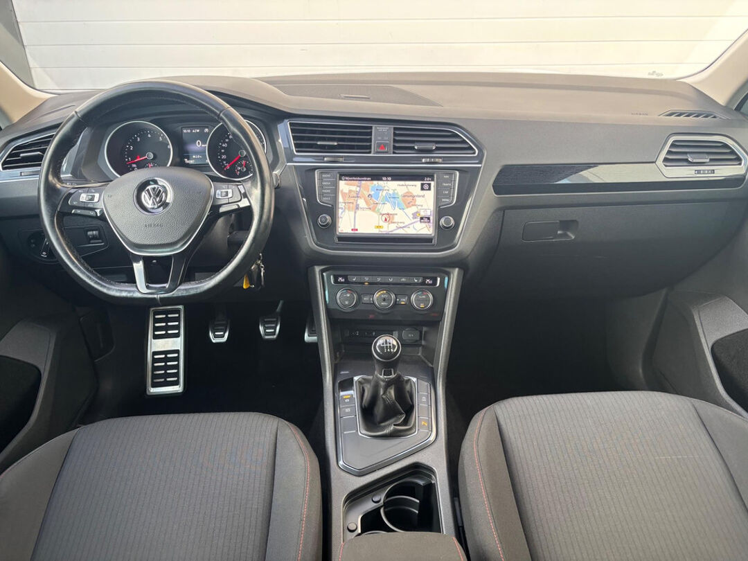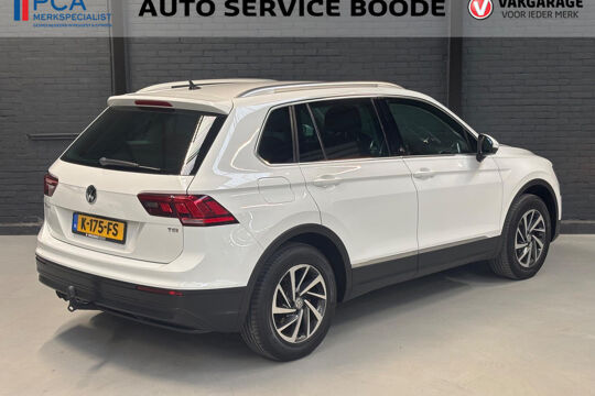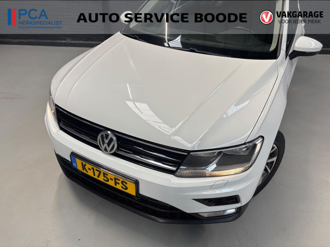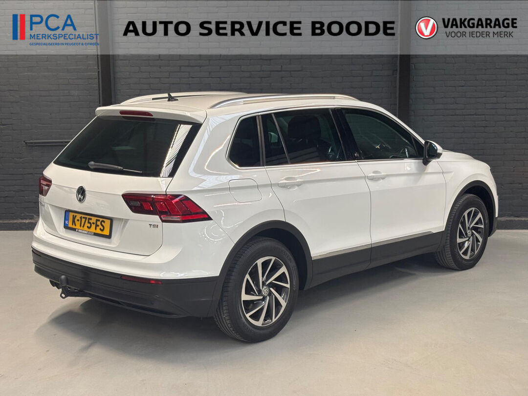 Keurige VW Tiguan met de 125 pk-sterke 1.4 turbomotor, in combinatie met een handgeschakelde 6-versnellingsbak. Deze Tiguan in de Sound-uitvoering is onder andere voorzien van een touchscreen navigatiesysteem met aanvullend ook ondersteuning van Apple Carplay + Android Auto, parkeersensoren voor + achter, adaptieve cruise control, climate control (voor + achter), 17 inch two-tone lichtmetalen velgen, verwarmbare voorstoelen, en een trekhaak.