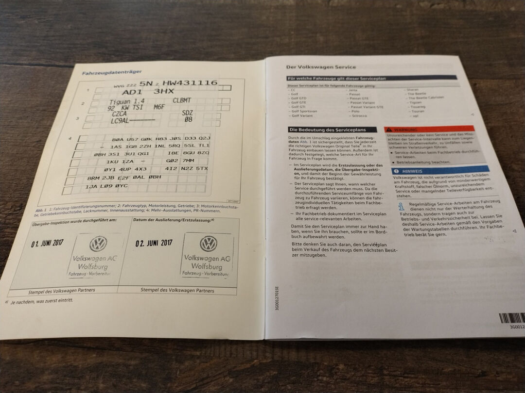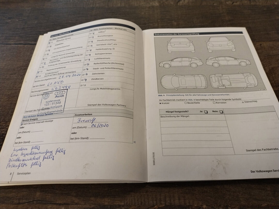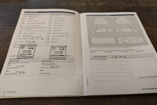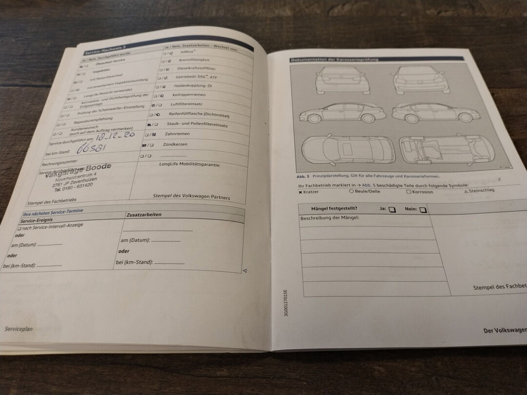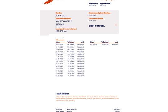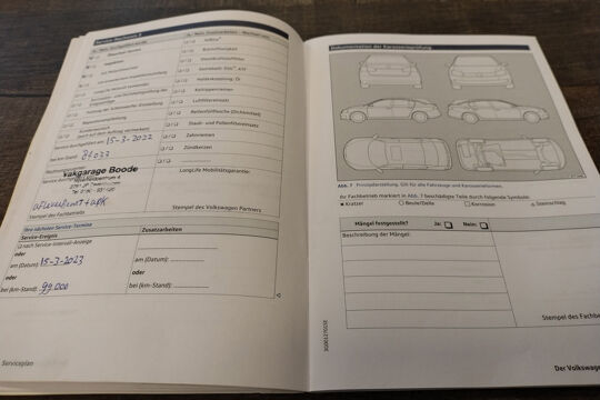 Deze Tiguan is bij de VW-dealer onderhouden bij 124.397 km op 8-3-2025 (o.a. motorolie, oliefilter, interieurfilter en remvloeistof vernieuwd) en bij 98.749 km op 8-2-2023 (o.a. motorolie, oliefilter, interieurfilter, luchtfilter, bougies en remvloeistof vernieuwd). Bij 84.033 km (in maart 2022), bij 81.578 km (in december 2021), en bij 66.381 km (in december 2020) is er door onze werkplaats onderhoud uitgevoerd. En de eerste twee onderhoudsbeurten (bij 61.050 km in april 2020 en bij 29.636 km in november 2018) zijn in Duitsland door de VW-dealer uitgevoerd. Het onderhoudsboekje is aanwezig, en aanvullend ook de uitdraai uit het digitale onderhoudsregister van VW.