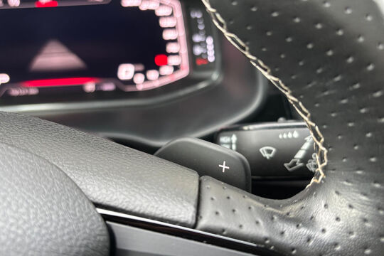 aan een 7-traps automaat. Adaptief Demping Systeem (ADS), achteruitrijcamera, Apple Carplay / Android Auto, airco automatisch (climate control), Beats Audiosysteem, cruise control adaptief, DAB+ radio, draadloze telefoonlader, elektr. glazen schuif-/kanteldak, getint glas, LED verlichting, lederen / alcantara bekleding, keyless entry en start, metallic lak Mythosschwarz, navigatiesysteem, parkeersensoren voor en achter, regensensor, rijstrooksensor, sportstoelen, sportstuur, stoelverwarming, volledig digitaal instrumentenpaneel.