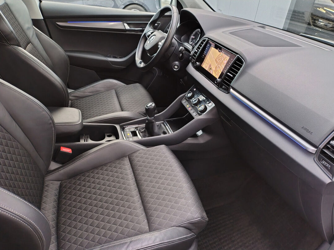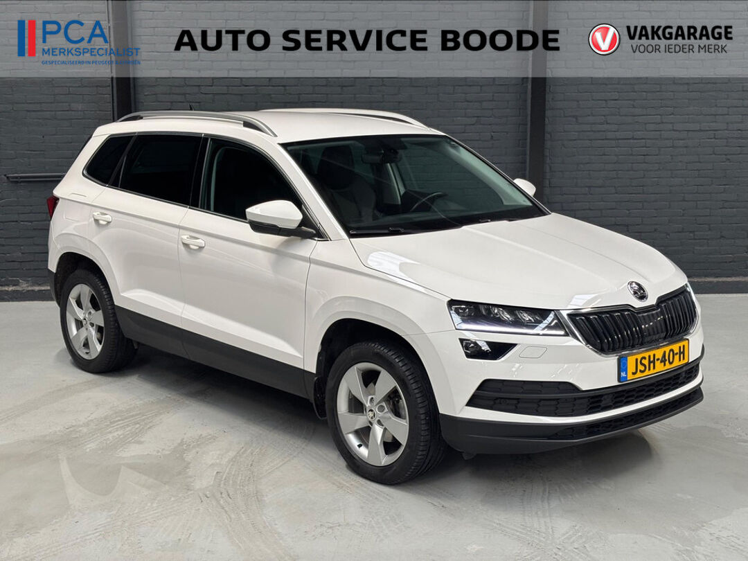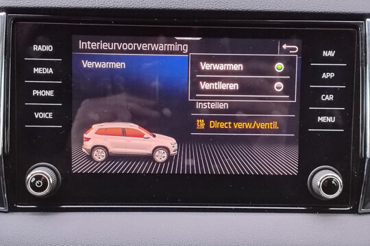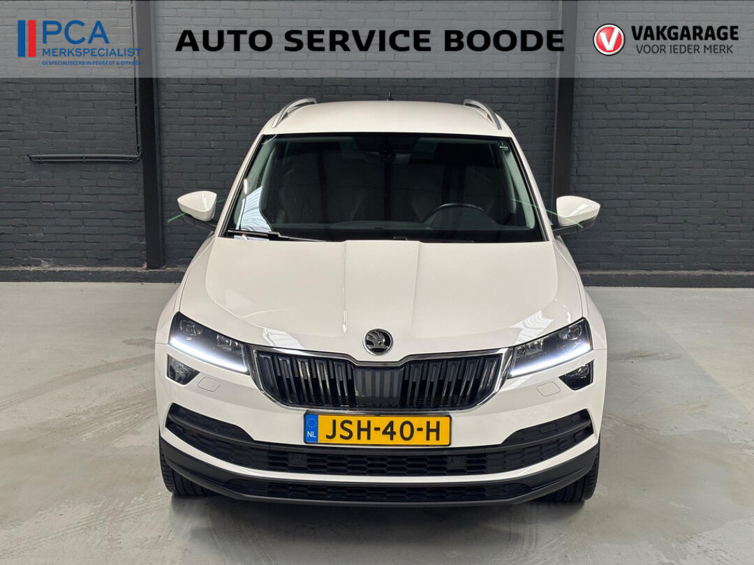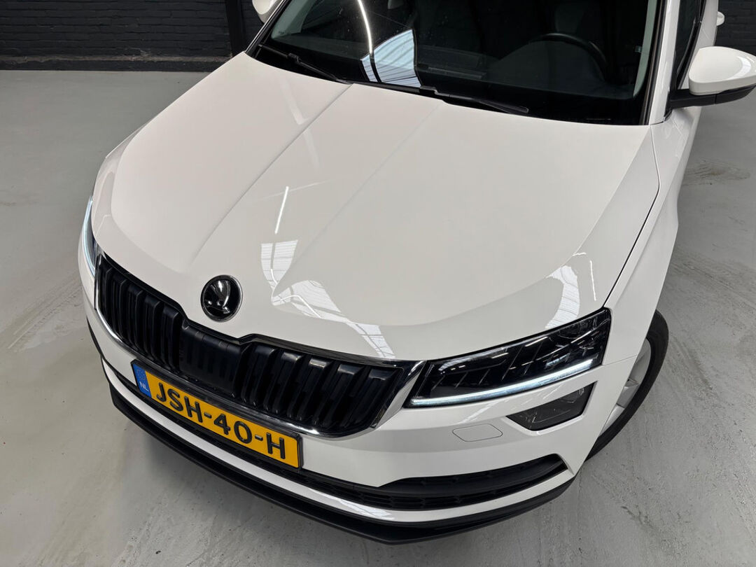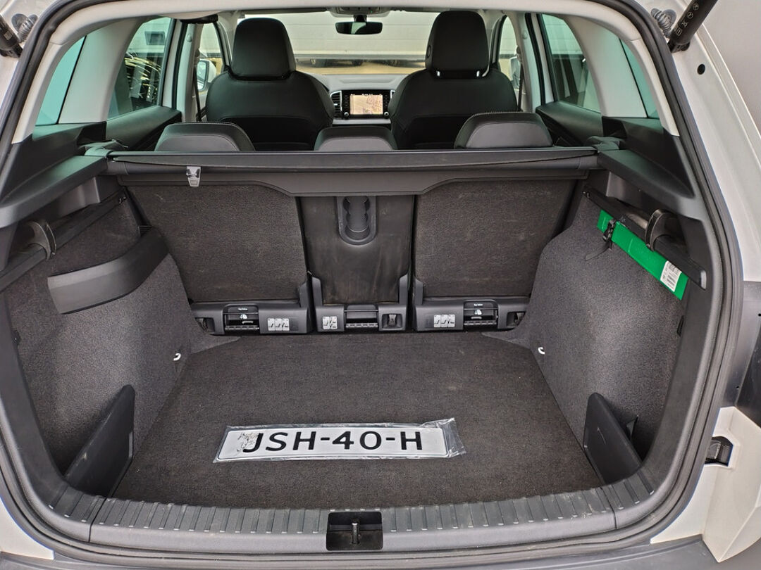 Mooie Skoda Karoq met zuinige 1.0 turbomotor met 110 pk, in combinatie met een handgeschakelde 6-versnellingsbak. Deze Karoq is onder andere voorzien van een touchscreen navigatiesysteem met aanvullend ook ondersteuning van Apple Carplay + Android Auto, parkeersensoren voor+achter i.c.m. achteruitrijcamera, adaptieve cruise control, climate control, DAB+ radio, elektrische achterklep, sportstoelen, half (kunst)lederen bekleding, keyless entry + start, LED verlichting, stoelverwarming, stuurwiel verwarming, Canton audiosysteem, sfeerverlichting, voorverwarmingssysteem (standkachel) en een elektrisch wegklapbare trekhaak. Deze Karoq is voorzien van 3 verschuifbare stoelen achterin.