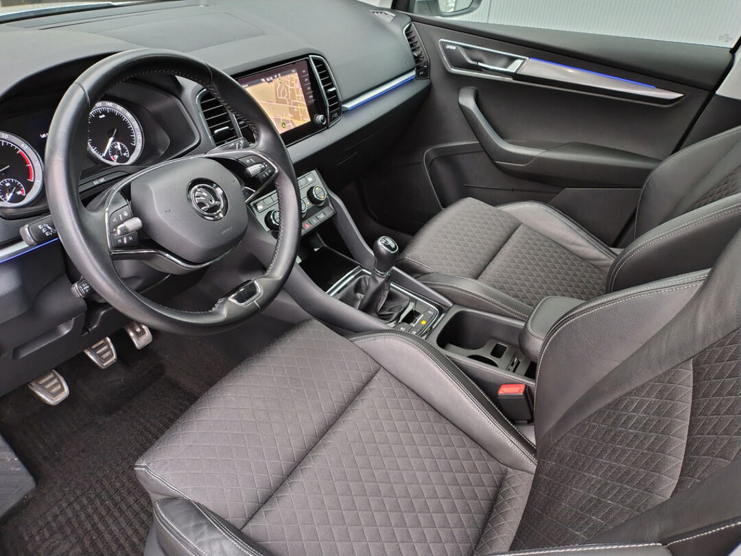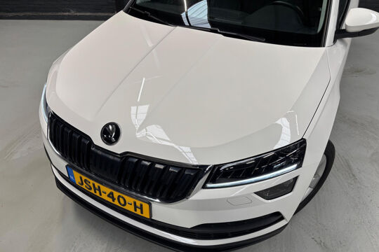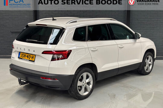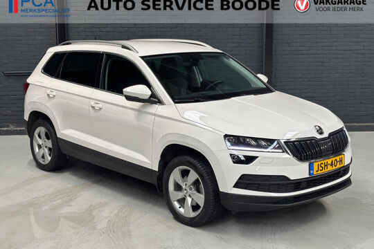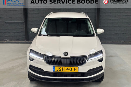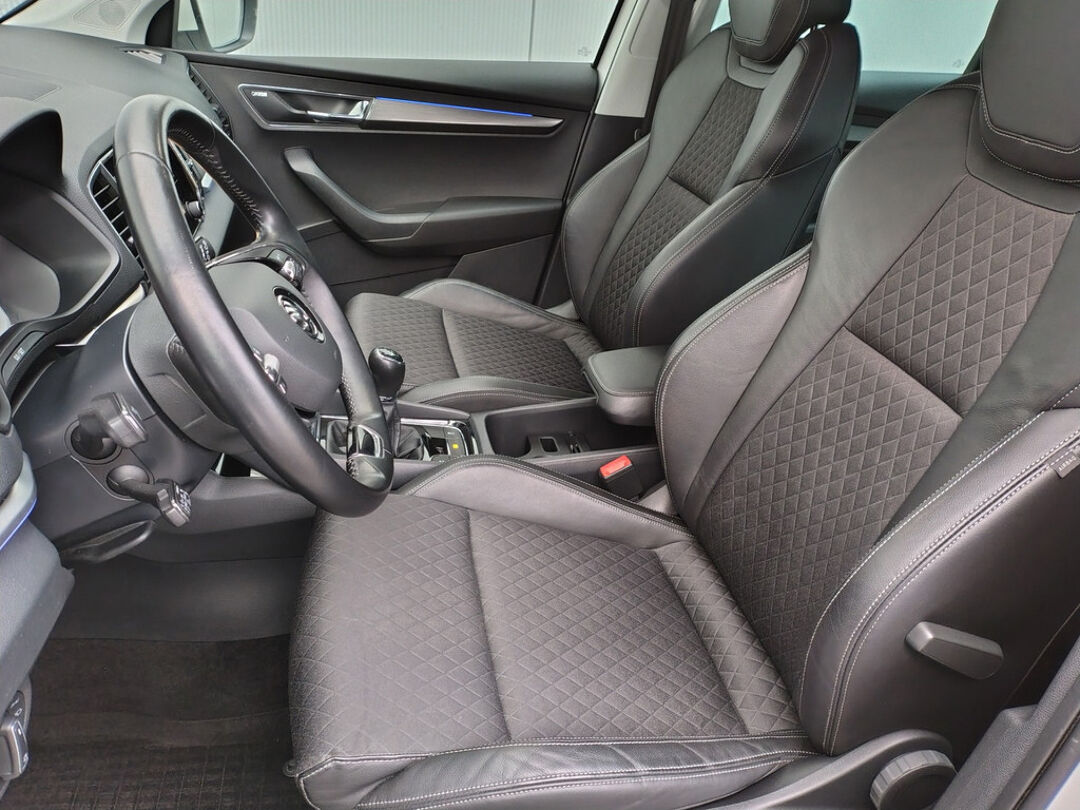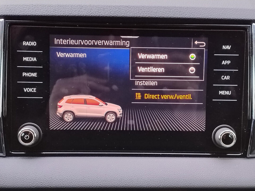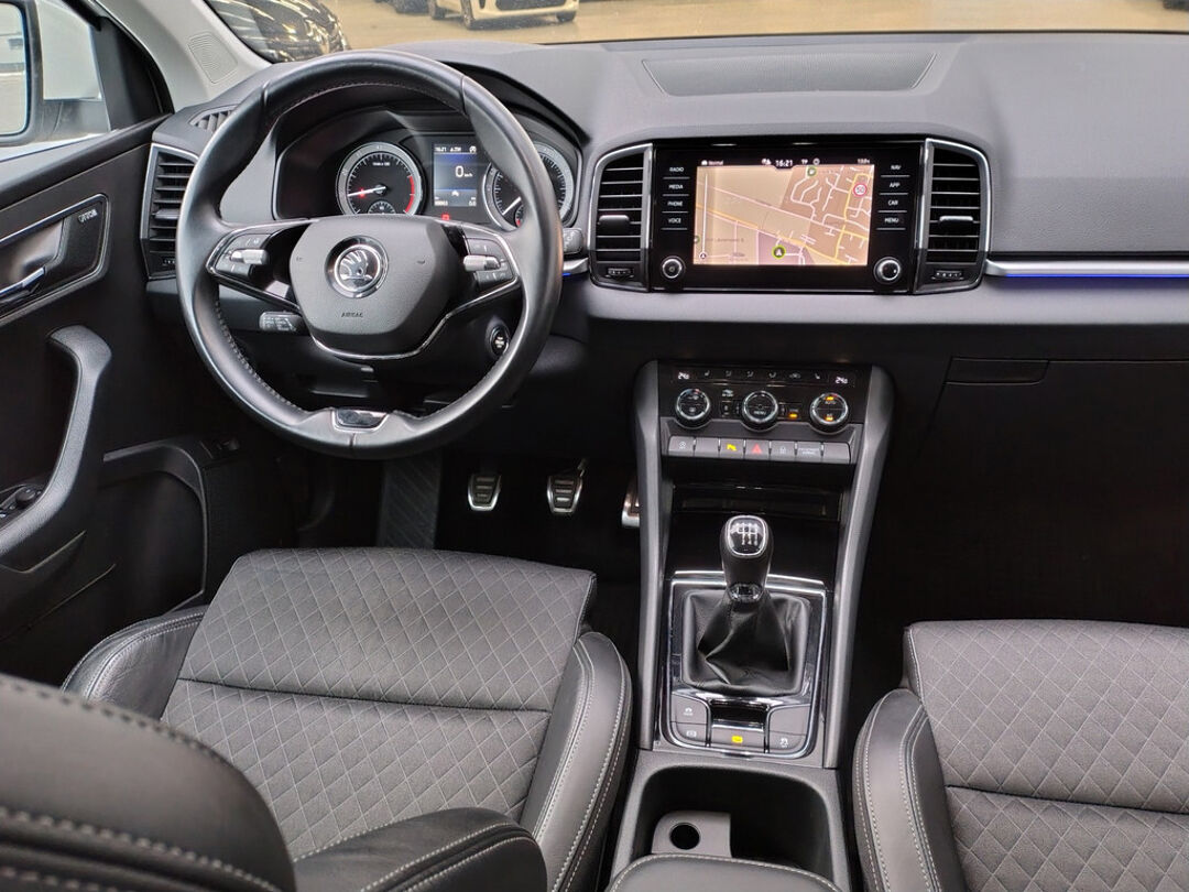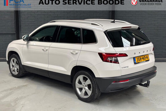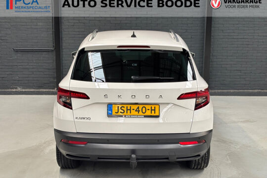 Mooie Skoda Karoq met zuinige 1.0 turbomotor met 110 pk, in combinatie met een handgeschakelde 6-versnellingsbak. Deze Karoq is onder andere voorzien van een touchscreen navigatiesysteem met aanvullend ook ondersteuning van Apple Carplay + Android Auto, parkeersensoren voor+achter i.c.m. achteruitrijcamera, adaptieve cruise control, climate control, DAB+ radio, elektrische achterklep, sportstoelen, half (kunst)lederen bekleding, keyless entry + start, LED verlichting, stoelverwarming, stuurwiel verwarming, Canton audiosysteem, sfeerverlichting, voorverwarmingssysteem (standkachel) en een elektrisch wegklapbare trekhaak. Deze Karoq is voorzien van 3 verschuifbare stoelen achterin.
