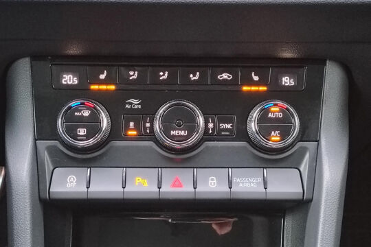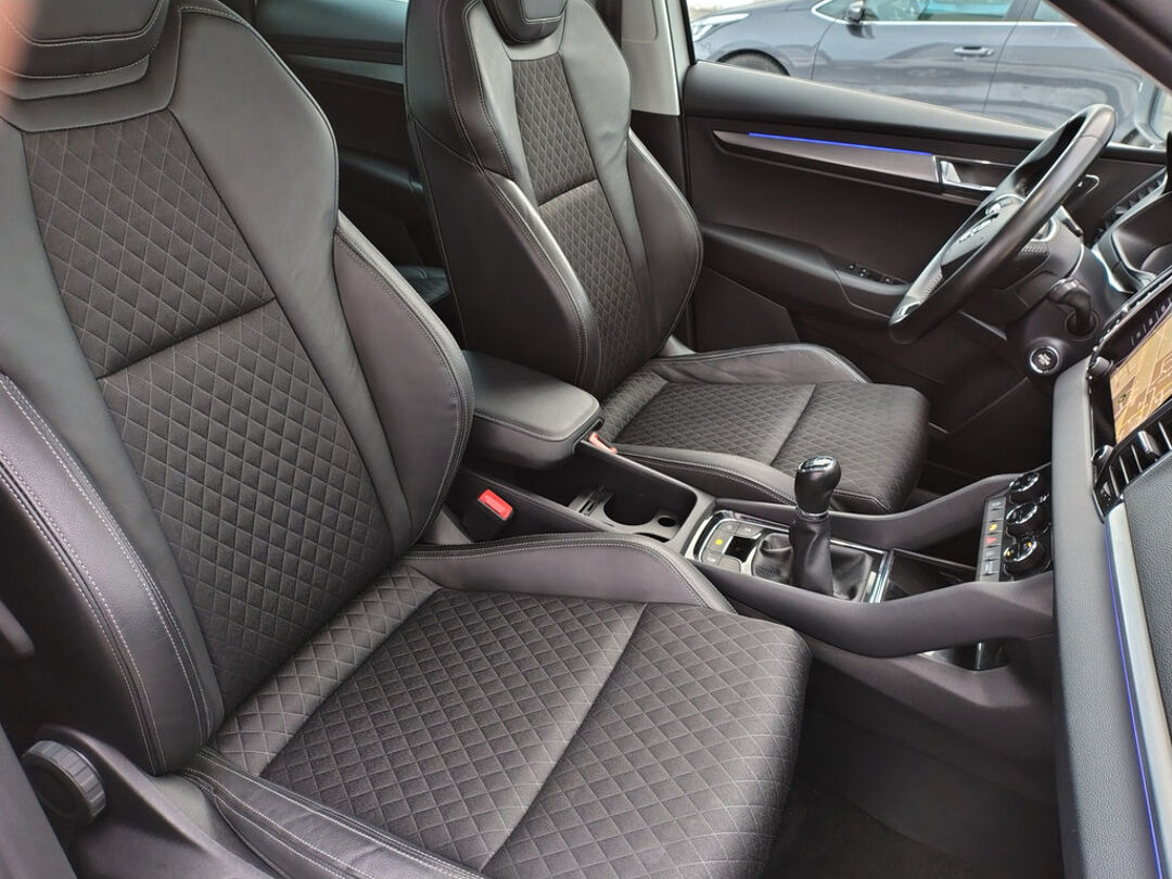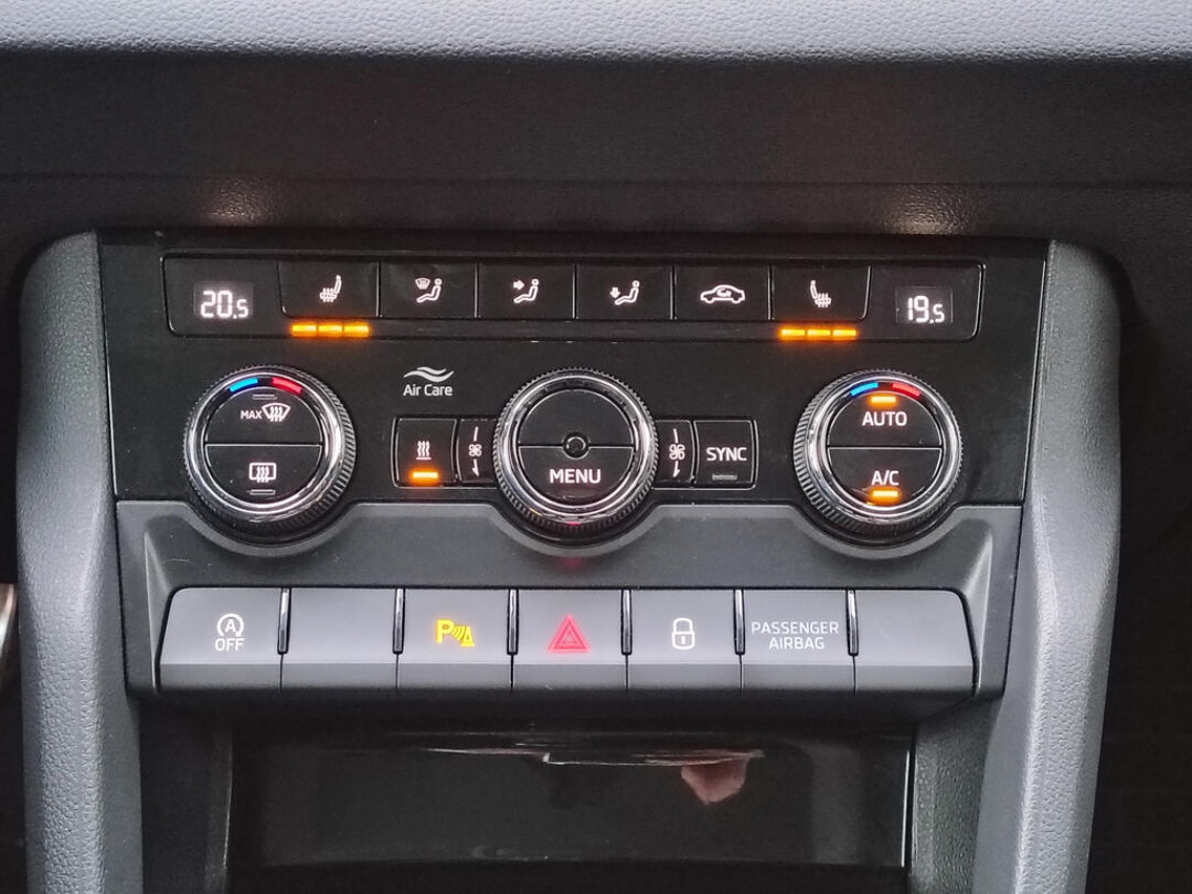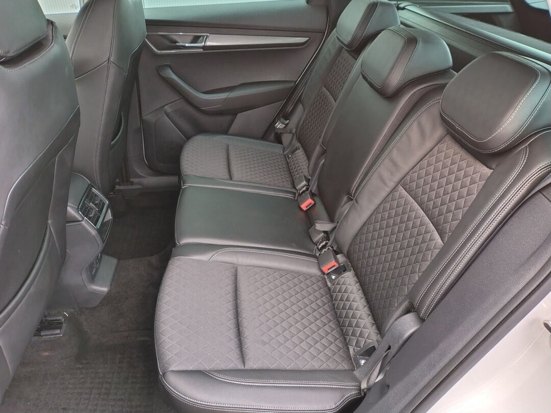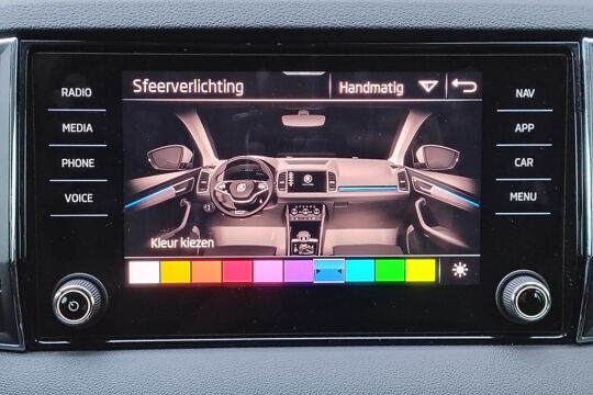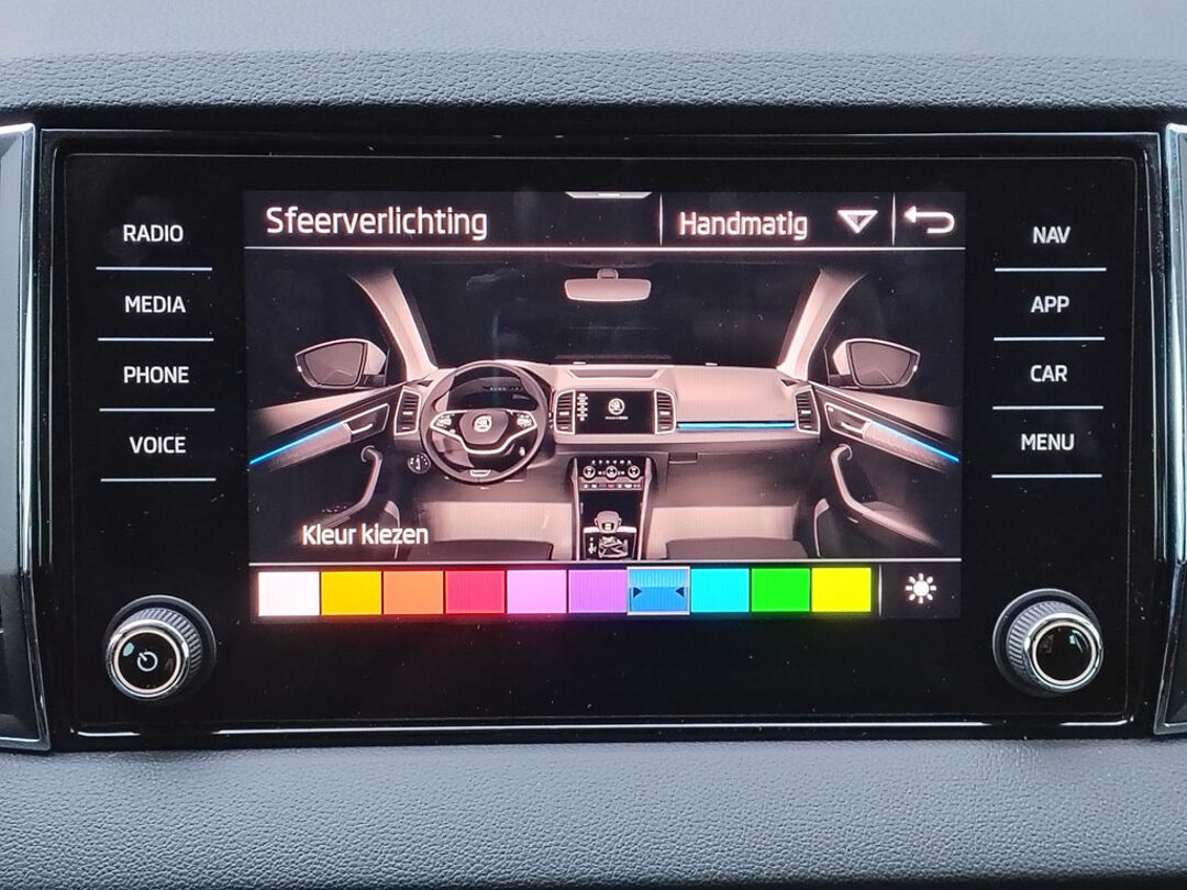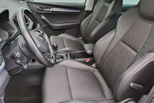 Mooie Skoda Karoq met zuinige 1.0 turbomotor met 110 pk, in combinatie met een handgeschakelde 6-versnellingsbak. Deze Karoq is onder andere voorzien van een touchscreen navigatiesysteem met aanvullend ook ondersteuning van Apple Carplay + Android Auto, parkeersensoren voor+achter i.c.m. achteruitrijcamera, adaptieve cruise control, climate control, DAB+ radio, elektrische achterklep, sportstoelen, half (kunst)lederen bekleding, keyless entry + start, LED verlichting, stoelverwarming, stuurwiel verwarming, Canton audiosysteem, sfeerverlichting, voorverwarmingssysteem (standkachel) en een elektrisch wegklapbare trekhaak. Deze Karoq is voorzien van 3 verschuifbare stoelen achterin.