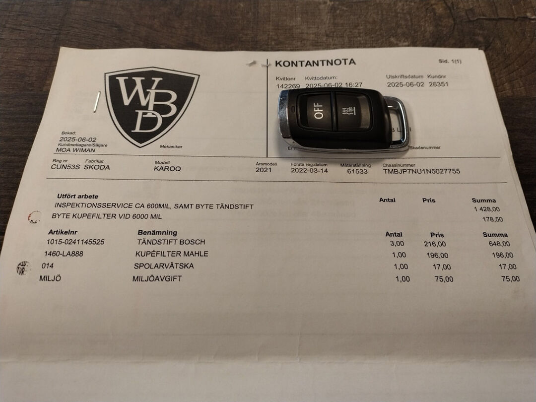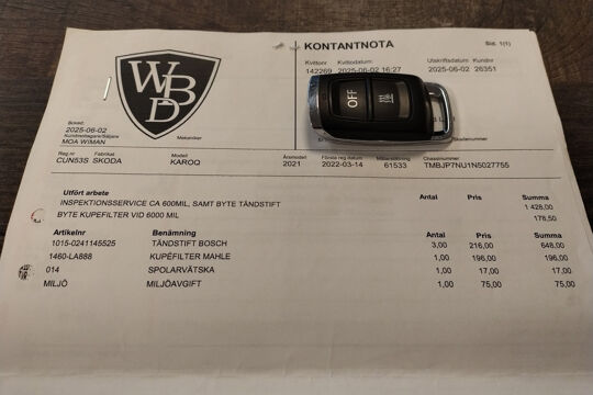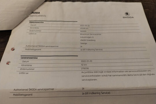 Bij 61.533 km op 7-8-2025 is bij een universele garage onderhoud uitgevoerd (o.a. motorolie, oliefilter, interieurfilter en bougies vernieuwd). De onderhoudsfacturen zijn aanwezig en het uitgevoerde onderhoud staat geregistreerd in het digitale serviceregister van Skoda.