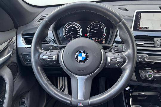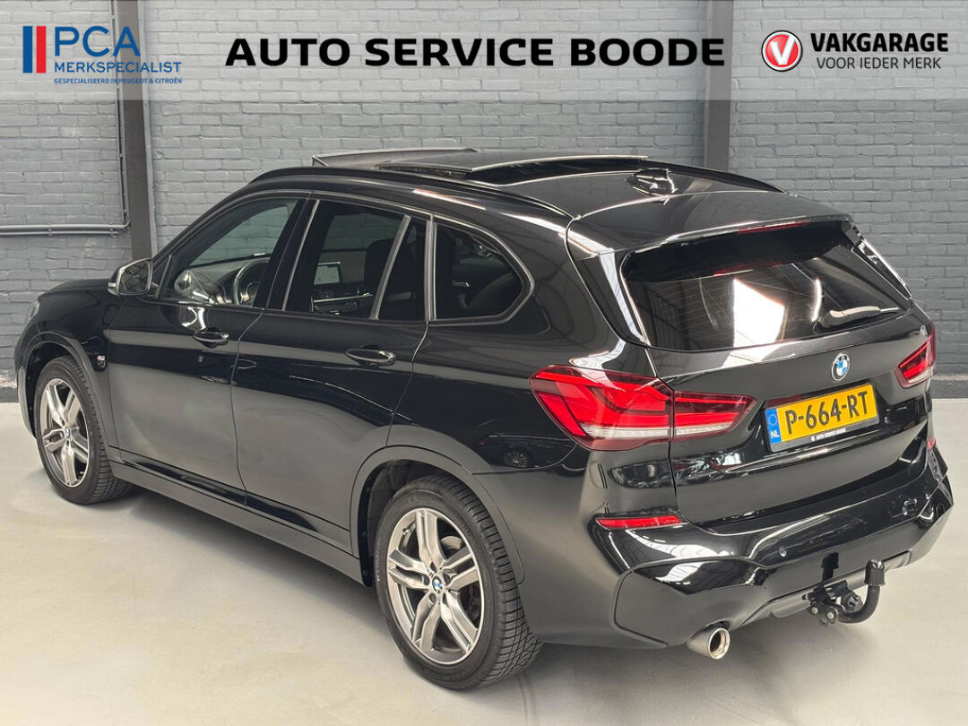 Mooie BMW X1 met sDrive18i motor met 136 pk, gekoppeld aan een volautomatische versnellingsbak. Met het kenmerkende en sportieve M-Sport pakket een mooie samenstelling waarmee de auto is voorzien van o.a. airco automatisch (climate control), Apple Carplay / Android Auto, cruise control, dakrails, elektr. bedienbare achterklep, keyless start, LED verlichting, navigatiesysteem, parkeersensoren voor + achter. Los van deze standaarduitrusting is deze auto nog eens extra voorzien van elektr. schuif-/kanteldak, half lederen bekleding, lichtmetalen velgen 18 inch M-Sport, M Aerodynamica (bumperpakket), metallic lak, sportstoelen, sportonderstel en een trekhaak.