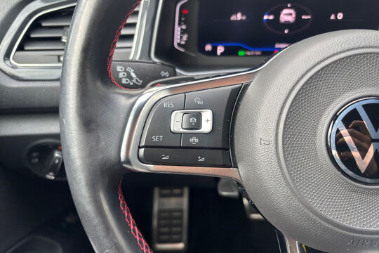 In de Sport Business R uitvoering is deze auto o.a. voorzien van: actieve remassistentie, automatische airconditioning, achteruitrijcamera, adaptieve cruise control, all-seasonbanden, Apple Carplay / Android Auto, DAB+ radio, elektr. achterklep, IsoFix, LED verlichting, lichtmetalen velgen 18 inch, navigatiesysteem, metallic lak, parkeersensoren voor en achter, R-Line exterieur, rijstrooksensor met correctie, trekhaak afneembaar, volledig digitaal instrumentenpaneel / virtual cockpit.