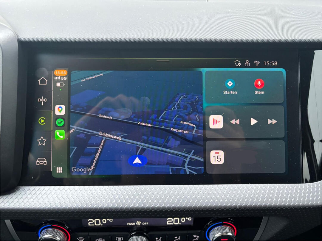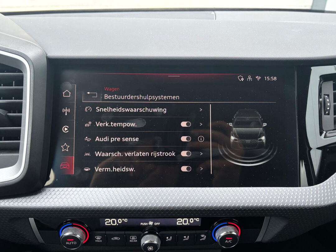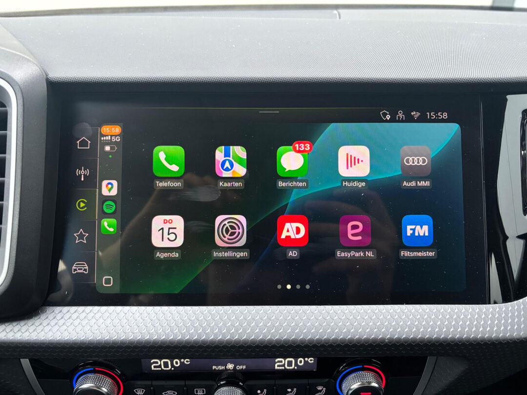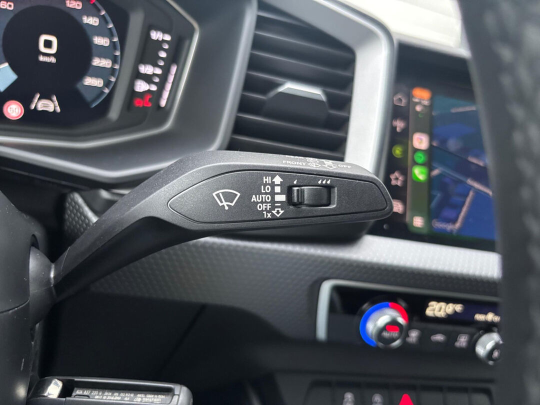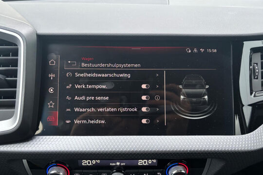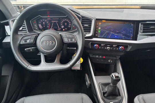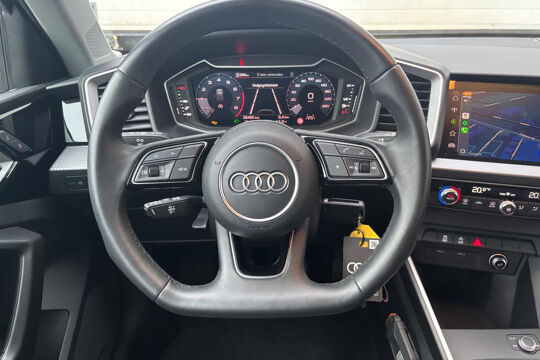 Nette Audi A1 met zuinige 1.0 liter benzinemotor met 116 pk, gekoppeld aan een handgeschakelde versnellingsbak met zes versnellingen. Deze A1 is sportief uitgevoerd met o.a. 17 inch two-tone lichtmetalen velgen, zwart dak i.c.m. zwarte buitenspiegels, sportstoelen, extra getinte achterzijruiten + achterruit, en LED koplampen + LED achterlichten. Daarnaast is deze A1 voorzien van een Virtual Cockpit (digitaal instrumentenpaneel), touchscreen audiosysteem met ondersteuning van Bluetooth + Apple Carplay + Android Auto (waarmee o.a. het navigatiesysteem van een smartphone op het scherm getoond en bediend kan worden) climate control, cruise control, parkeersensoren achter, Lane Assist, en Front Assist.