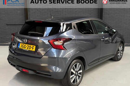 Zeer nette Nissan Micra met 1.0 benzinemotor met 93pk, gekoppeld aan een soepele automaat. Deze Micra is voorzien van o.a. airconditioning, Apple Carplay / Android Auto, cruise control, DAB+ radio, dimlichten automatisch, elektr. ramen, elektr. verstelbare en inklapbare buitenspiegels, getint glas, IsoFix, Lane Assist, lichtmetalen velgen 16 inch, mistlampen, parkeersensoren achter, regensensor, start/stop, stoelverwarming.