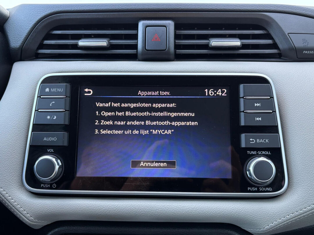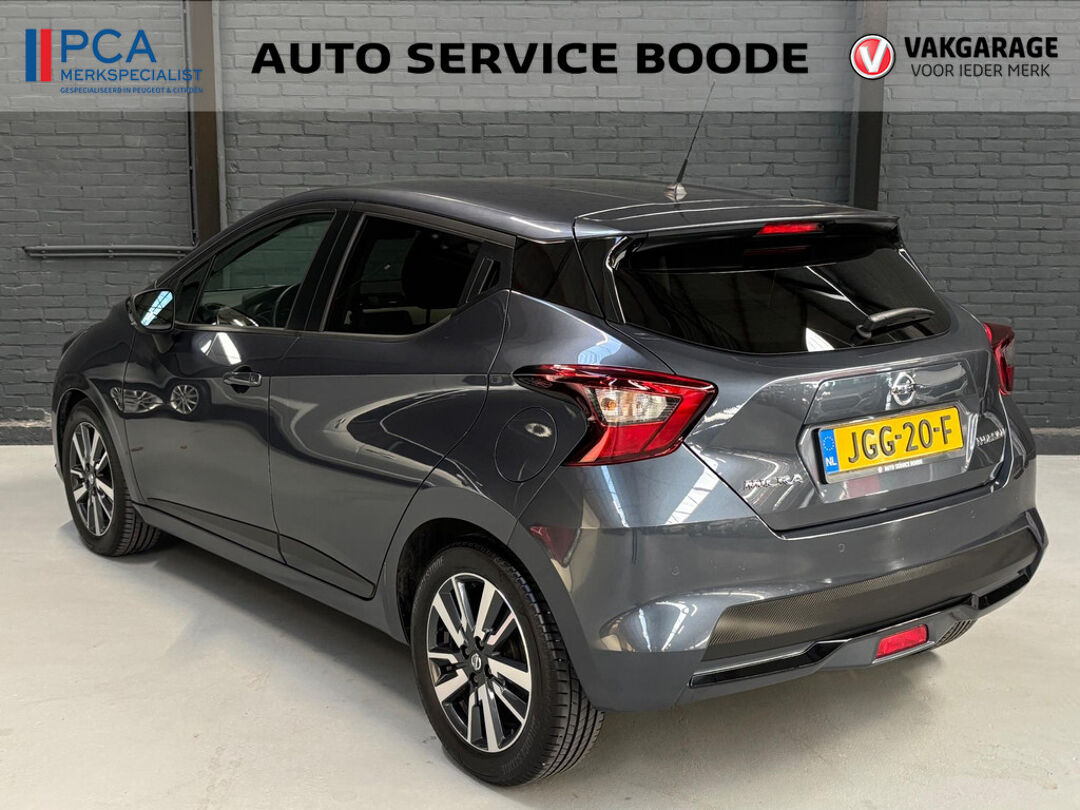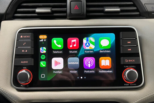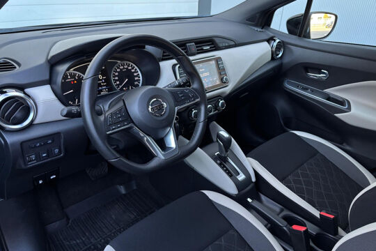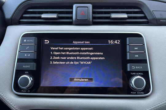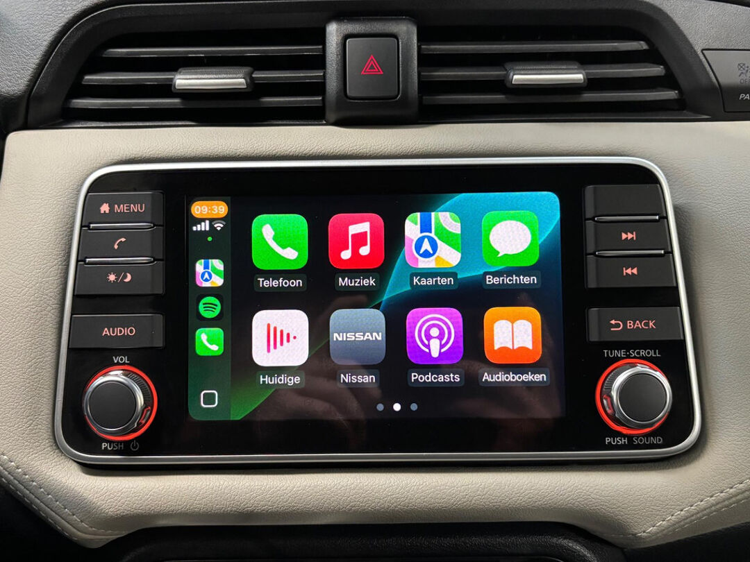 Zeer nette Nissan Micra met 1.0 benzinemotor met 93 pk, gekoppeld aan een soepele automatische versnellingsbak (van het type Xtronic / CVT). Deze Micra is voorzien van o.a. airconditioning, Apple Carplay / Android Auto, cruise control, DAB+ radio, dimlichten automatisch, elektr. ramen, elektr. verstelbare en inklapbare buitenspiegels, getint glas, IsoFix, Lane Assist, lichtmetalen velgen 16 inch, mistlampen, parkeersensoren achter, regensensor, start/stop, en stoelverwarming. Met behulp van Apple Carplay en Android Auto kan onder andere het navigatiesysteem van een smartphone op het touchscreen bediend en getoond worden.