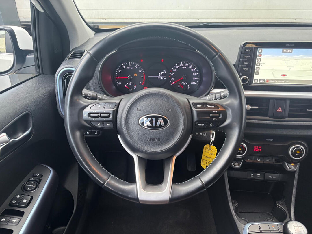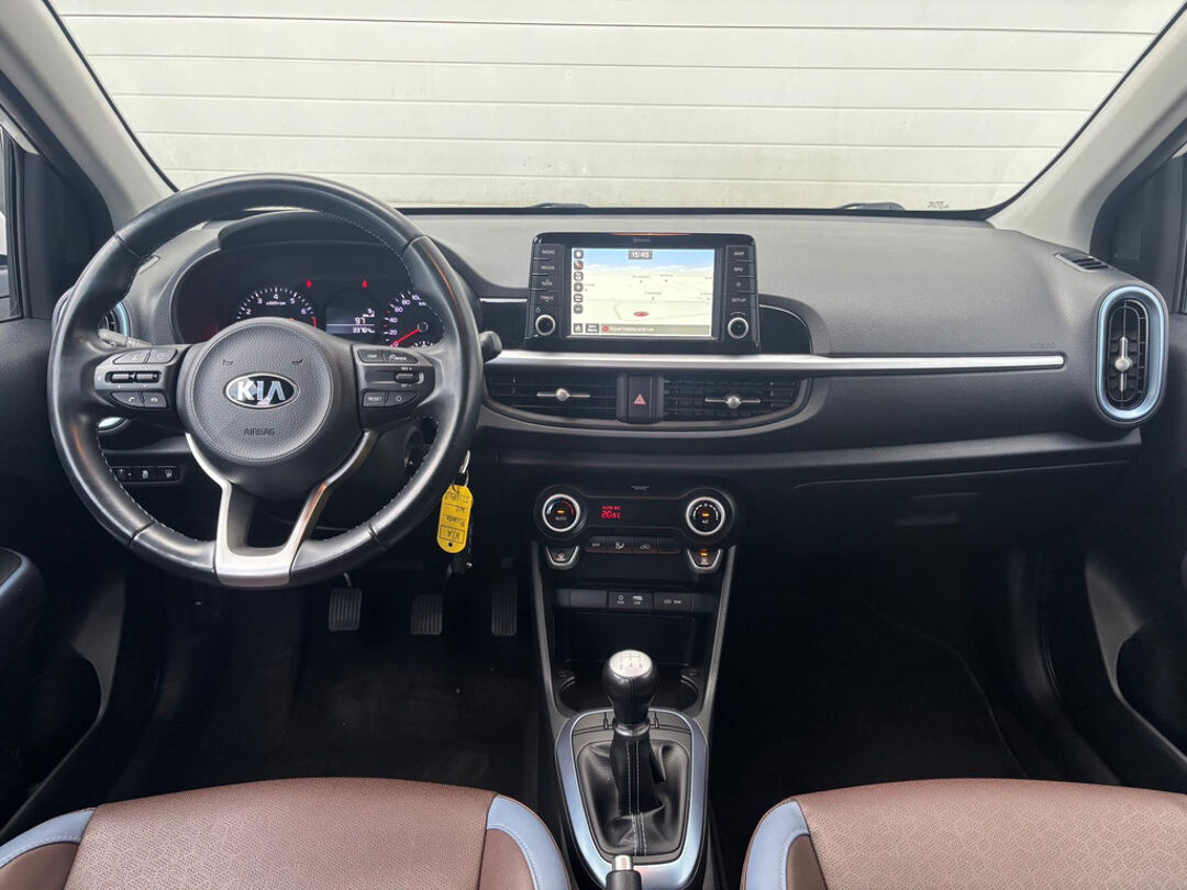 Hele nette, Nederlandse, 5-deurs Kia Picanto met zuinige 1.0 liter benzinemotor met 67pk. In unieke samenstelling voorzien van o.a. achteruitrijcamera, Apple Carplay / Android Auto, bluetooth telefoonverbinding, centrale deurvergrendeling met afstandsbediening, climate control, cruise control, elektrische ramen, getint glas, IsoFix, lederen bekleding, lichtmetalen velgen 16 inch, metallic lak, navigatiesysteem, start/stop functie, stuurwiel multifunctioneel.