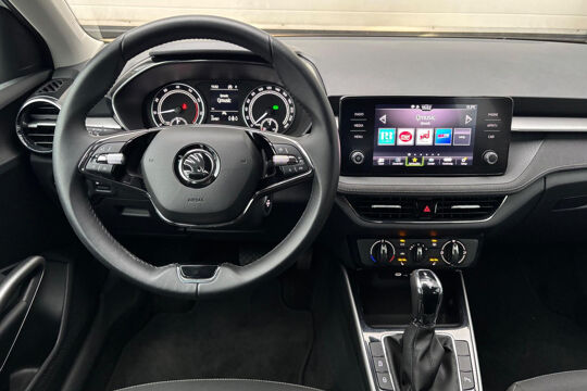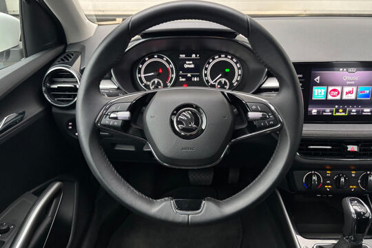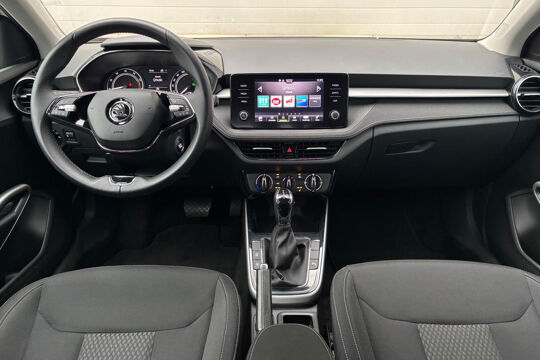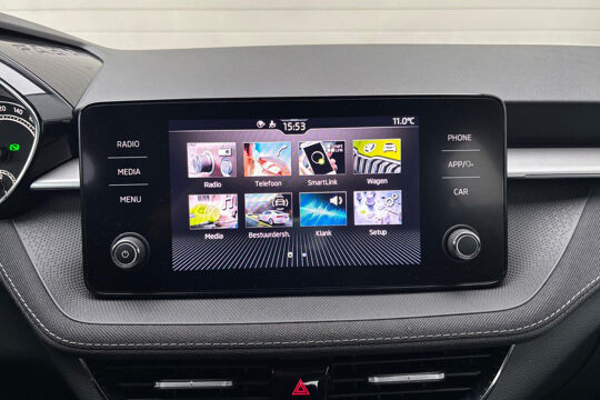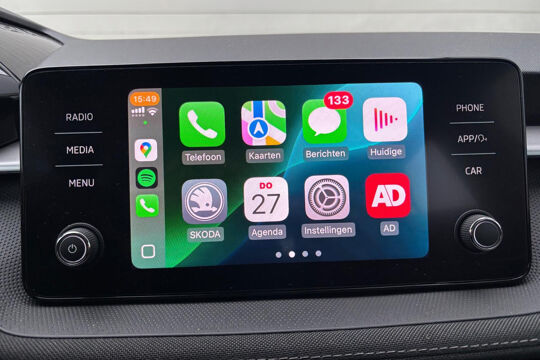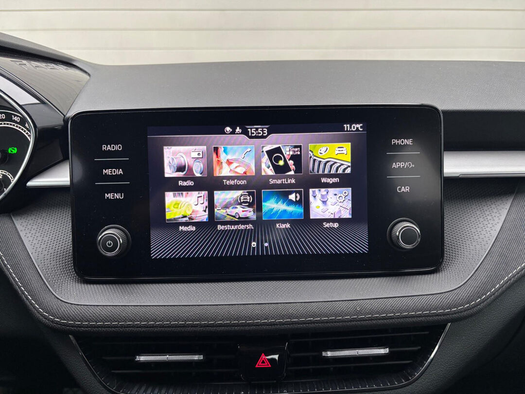 Mooie Skoda Fabia in de luxe Style uitvoering, voorzien van een zuinige 1.0 turbomotor (met 110 pk) in combinatie met een soepele 7-traps automatische versnellingsbak! Deze auto is voorzien van een touchscreen audiosysteem met ondersteuning van Apple Carplay + Android Auto, Bluetooth-carkit, airconditioning, cruise control, DAB+ radio, keyless entry + start, LED verlichting, lane assist, 16 inch lichtmetalen velgen, parkeersensoren voor + achter (met visuele weergave op het touchscreen), regensensor, sfeerverlichting, en verwarmbare voorstoelen. Met behulp van Apple Carplay en Android Auto kan het navigatiesysteem van een smartphone op het touchscreen bediend en getoond worden.