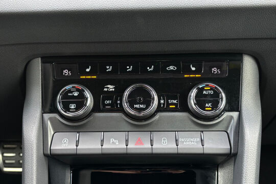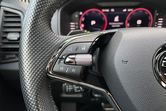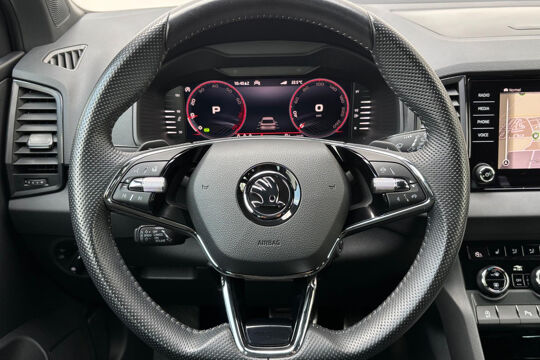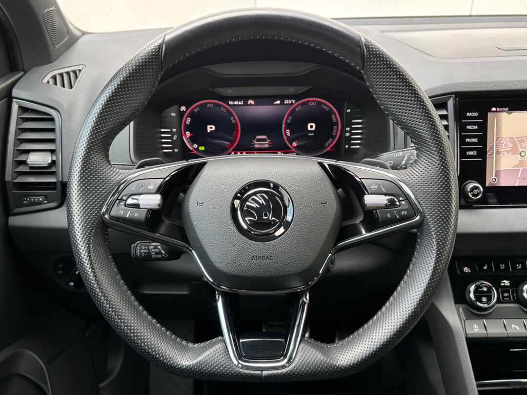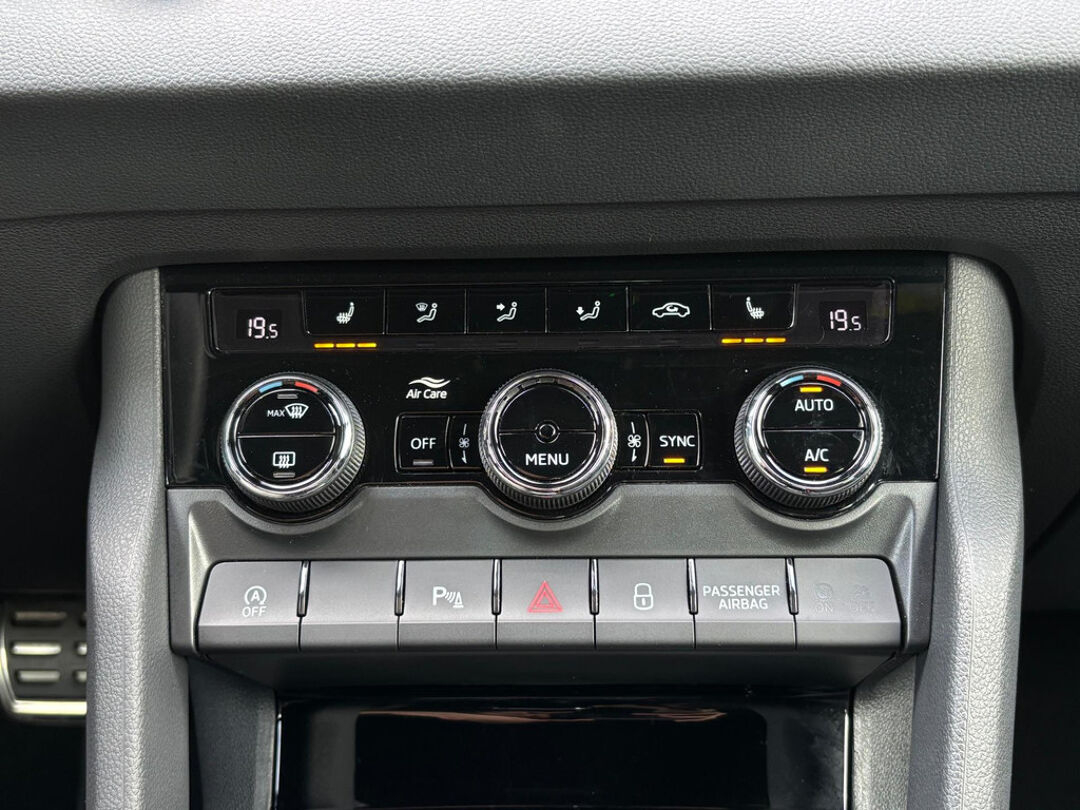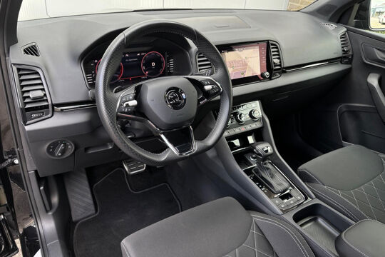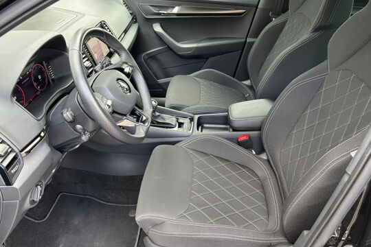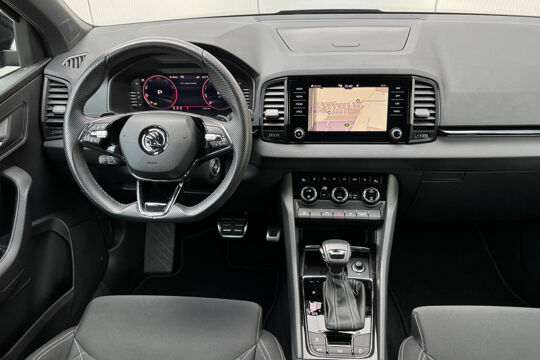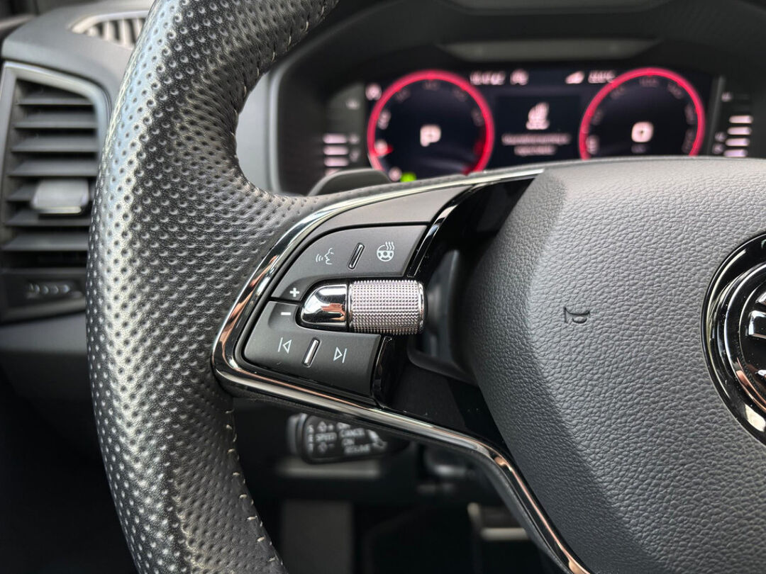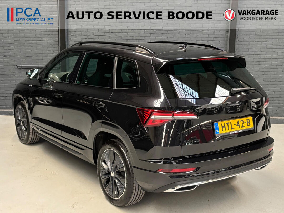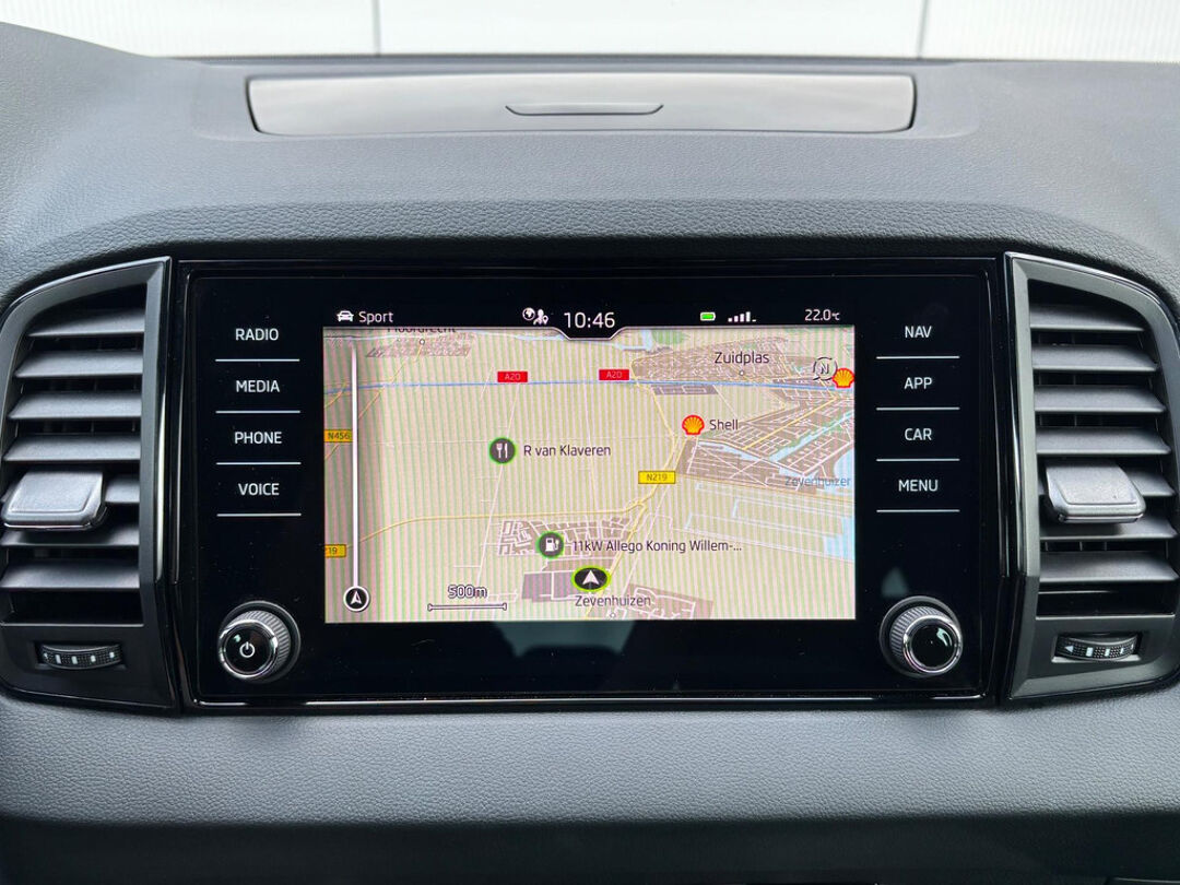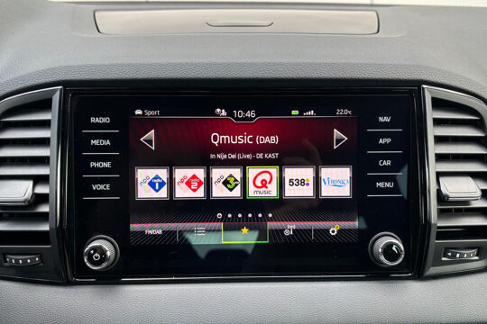 Zeer nette en complete Skoda Karoq met 1.5 liter benzinemotor met 150 pk, gekoppeld aan een 7-traps volautomaat. In de sportieve Sportline uitvoering is deze auto o.a. voorzien van achteruitrijcamera, adaptieve cruise control met stop & go, touchscreen navigatiesysteem, ondersteuning van Apple Carplay en Android Auto, carbonafwerking in interieur, DAB+ radio, dakrails, digitale cockpit, draadloze telefoonlader, hill-hold functie, keyless entry & start, lichtmetalen velgen 18 inch, parkeersensoren voor + achter, sportstoelen, sportstuur, stoelverwarming, en stuurverwarming.