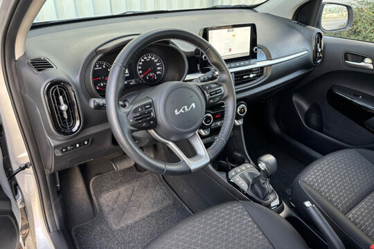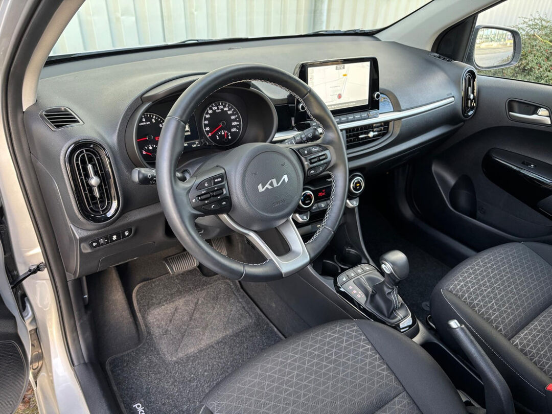 Keurige Kia Picanto met 5 deuren en automatische versnellingsbak! Deze Picanto is onder nadere voorzien van een touchscreen audiosysteem met ondersteuning Apple Carplay en Android Auto, Bluetooth-carkit, achteruitrijcamera, airconditioning (climate control), cruise control, verwarmbare voorstoelen, verwarmbaar stuurwiel, keyless entry en start, metallic lak en 15 inch two-tone lichtmetalen velgen. Met behulp van Apple Carplay en Android Auto kan onder andere het navigatiesysteem van een smartphone op het touchscreen bediend en getoond worden.