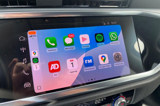 Zeer nette Audi Q3 Sportback met krachtige 35 TFSI motor (met 150 pk) en Mild Hybrid techniek, gekoppeld aan een soepele 7-traps automaat. Deze Audi is o.a. voorzien van Accident Avoidance Systeem, achteruitrijcamera, touchscreen met ondersteuning van Apple Carplay en Android Auto, automatische airconditioning (climate control), cruise control, DAB+ radio, elektrisch bedienbare achterklep, Lane Assist, LED verlichting, lichtmetalen velgen 5-dubbelspaaks 18 inch, metallic lak, parkeersensoren achter, volledig digitaal instrumentenpaneel, en stoelverwarming. Met Apple Carplay of Android Auto kunt u o.a. het navigatiesysteem van uw smartphone op het touchscreen in de auto gebruiken.