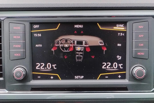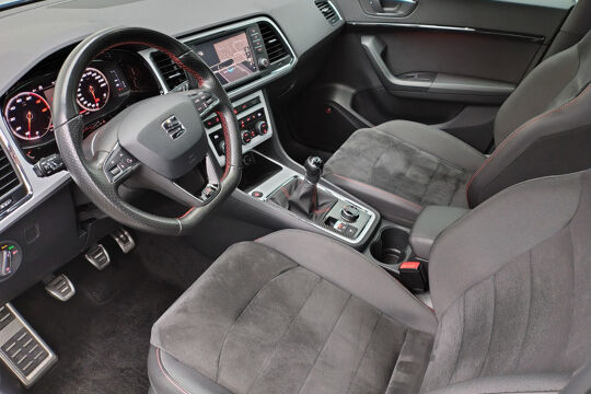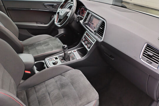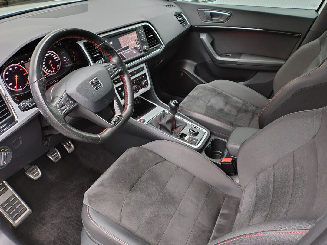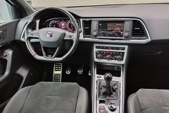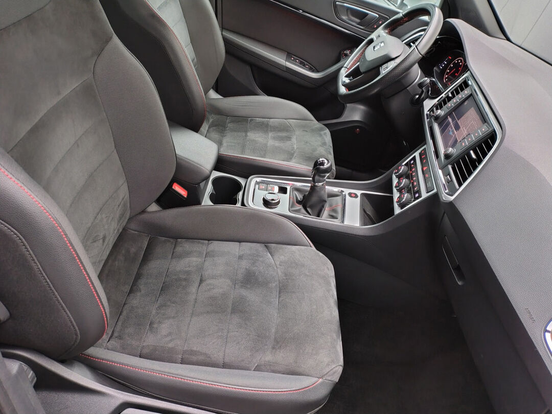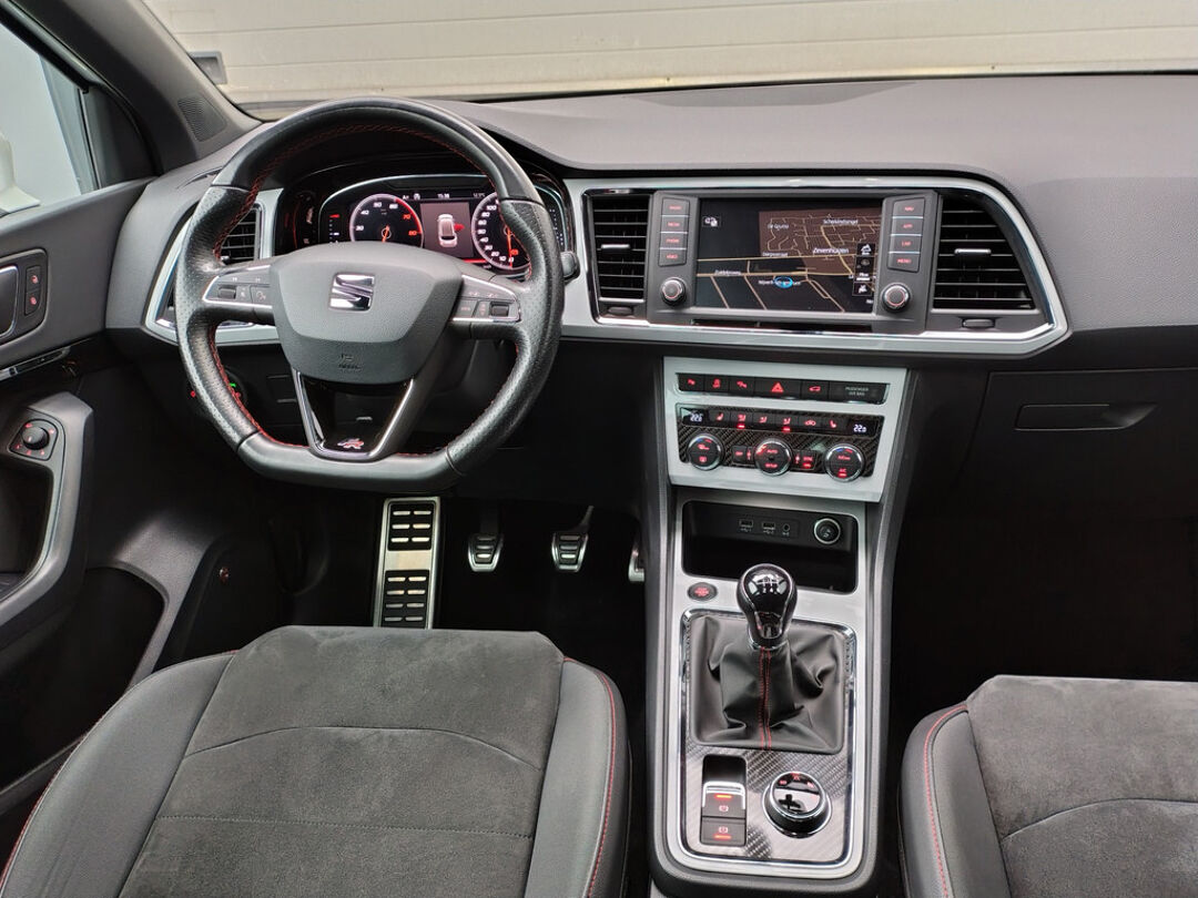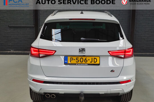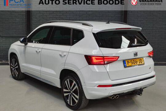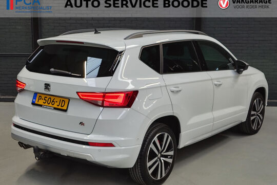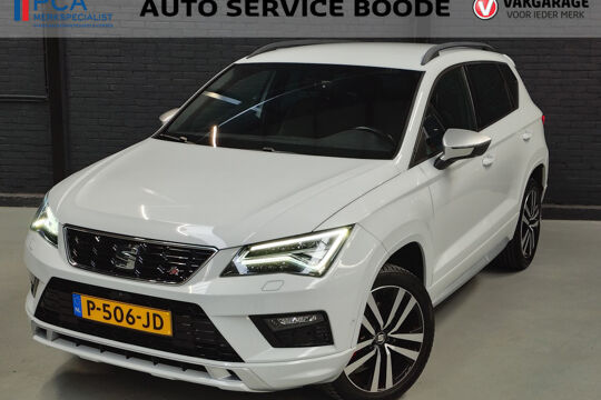 Mooie Seat Ateca met de soepele 1.4 turbomotor met 150 pk! Deze Seat is uitgevoerd als sportieve FR Business Intense. Deze Ateca is onder andere voorzien van een Virtual Cockpit (digitaal instrumentenpaneel), touchscreen navigatiesysteem met Bluetooth-carkit en ondersteuning van Apple Carplay + Android Auto, cruise control, elektrische achterklep, alcantara bekleding, inparkeerhulp i.c.m. 360 graden rondomzicht camera en parkeersensoren voor + achter, verwarmbare voorstoelen, 18 inch two-tone lichtmetalen velgen, Keyless Entry + Start, LED koplampen + achterlichten, Beats audiosysteem, draadloze telefoonlader, sfeerverlichting, en een elektrisch wegklapbare trekhaak.