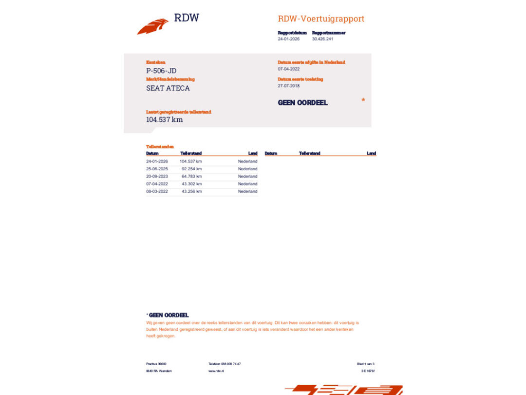 De prijs voor deze auto is inclusief een geldige APK (minimaal 6 maanden) en overschrijving van het kenteken op uw naam. Optioneel kunt u kiezen voor een Zekerheidspakket. Het Zekerheidspakket Basis kost EUR 495 en bestaat uit 6 maanden garantie, onderhoudsbeurt, minimaal 12 maanden APK, poetsen, en een halve tank brandstof. Het uitgebreider Zekerheidspakket Premium kost EUR 895 en biedt 12 maanden BOVAG garantie (in plaats van 6 maanden garantie).